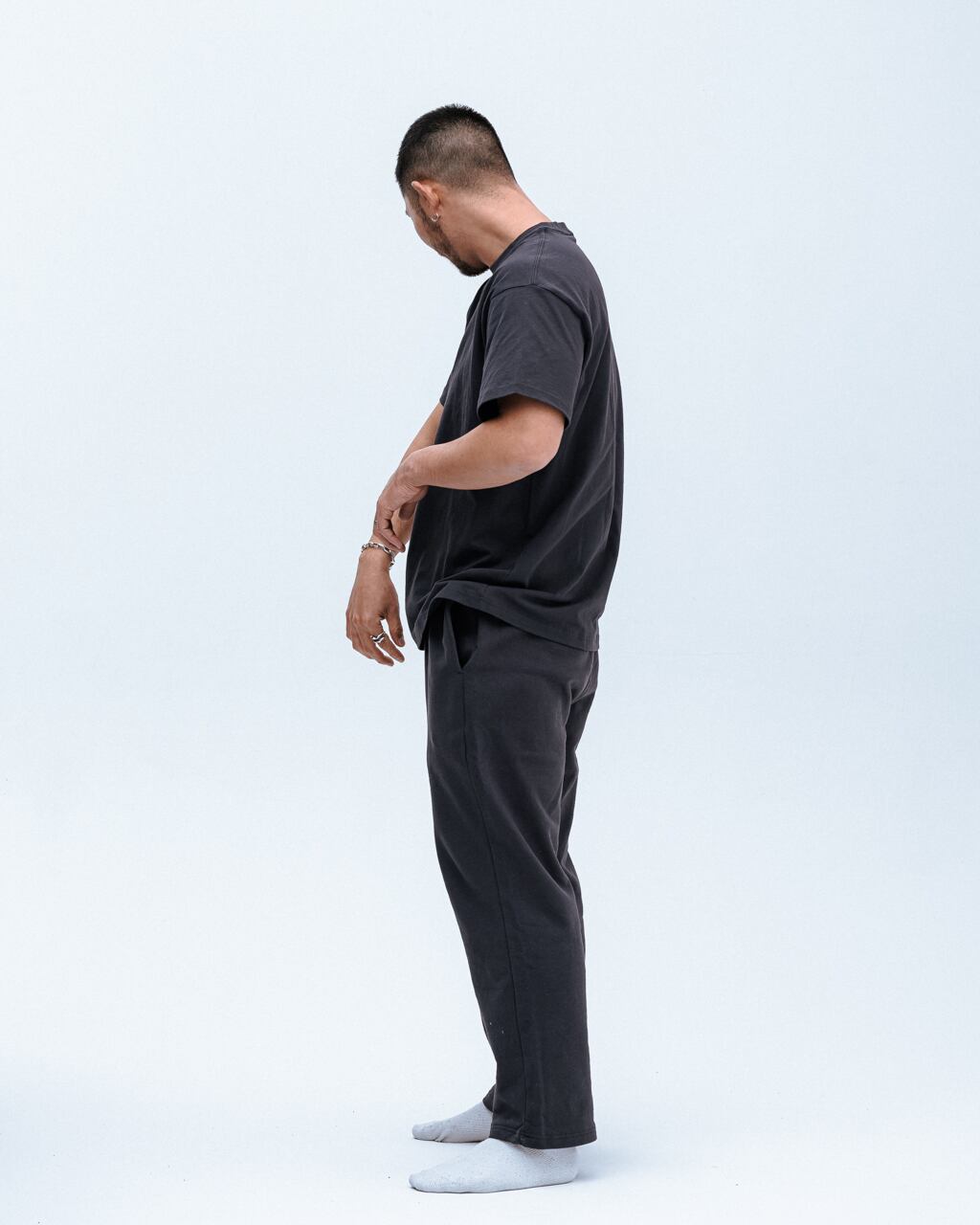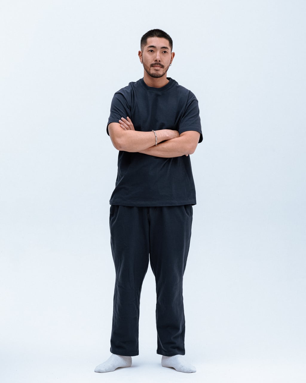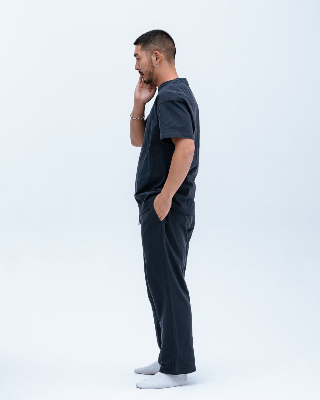 通常より短めの袖がポイントのスタンダードなTシャツ。